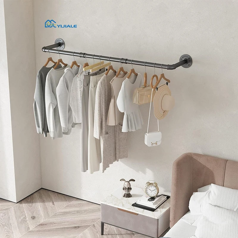 YIJIALE Wall Adjustable Garment Rack Heavy Duty Clothes Rack