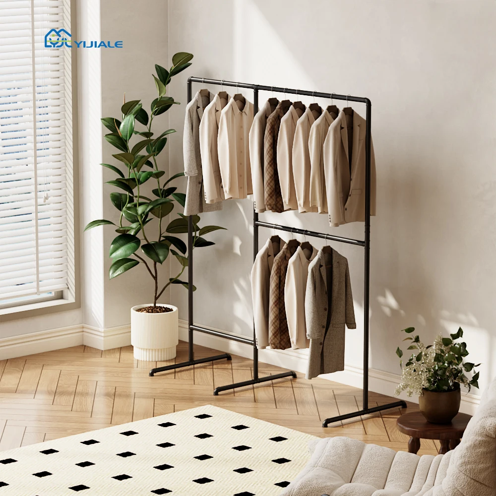 YIJIALE No Drill Clothes Rack Boutique Standing Clothing Rack Iron Garment Rack