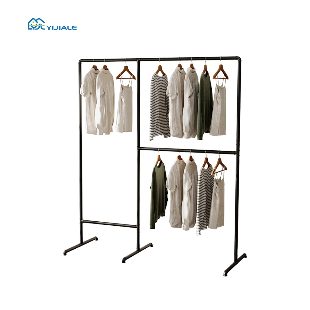 YIJIALE Outdoor Clothes Drying Rack Coat Hanger Stand Industrial Pipe Garment Rack