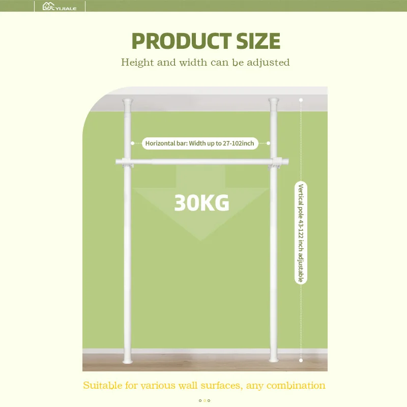 höhenverstellbar und kann von 1,1 bis 3,1 Metern verwendet werden. Der Schrankstab ist wasserdicht und rostfrei, und die Basis besteht aus