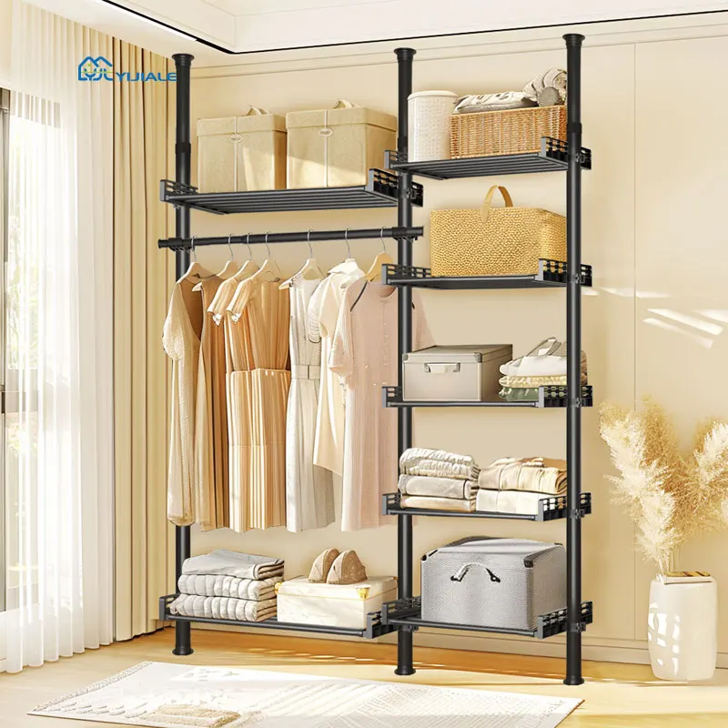 YIJIALE Nach Maß gefertigter Schrank Walk-in-Kleiderschrank Selberbau Metall offener Schrankstab-System