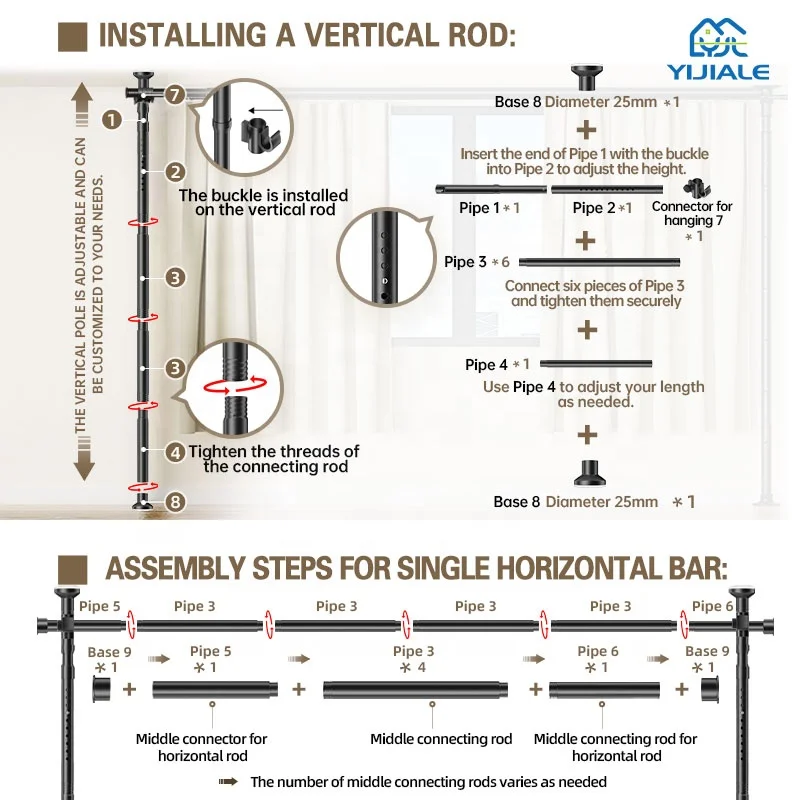 2 verschiedene Kombinationen zur Auswahl Produktbeschreibung Produktname Trennvorhang Stange Senkrechter Rohrdurchmesser: 25mm Farbe: Schwarz, Weiß und nach Maß anfertigbar. Wandstärke des Rohres: 0,5mm und nach Maß anfertigbar. Tragfähigkeit einer einzelnen Stange: 30KG Material: Kohlenstoffstahl Vorteil: Umweltfreundlich...