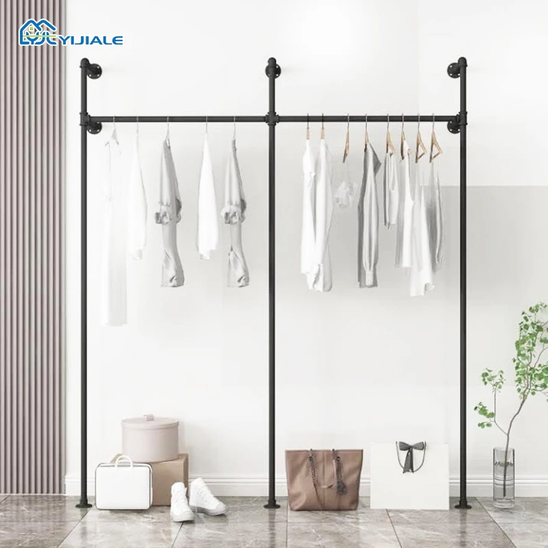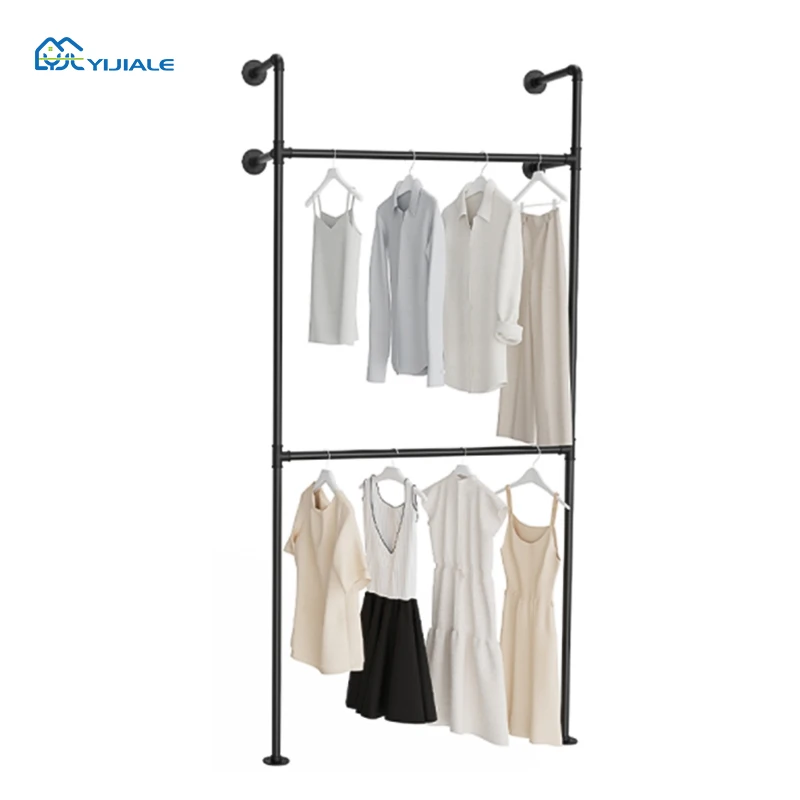 YIJIALE Clothing Black Store Pole System Wardrobe Metal Custom Walk In Closet System
