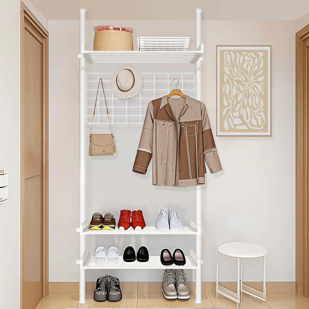 Adjustable Height Smart Clothing Storage Standing Clothes Rack Portable Clothes Stands Shoe Racks