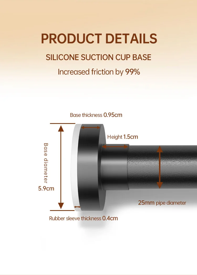 This expandable curtain rod base is made of transparent silicone base, which has strong adsorption and can be waterproof and rust-proof.