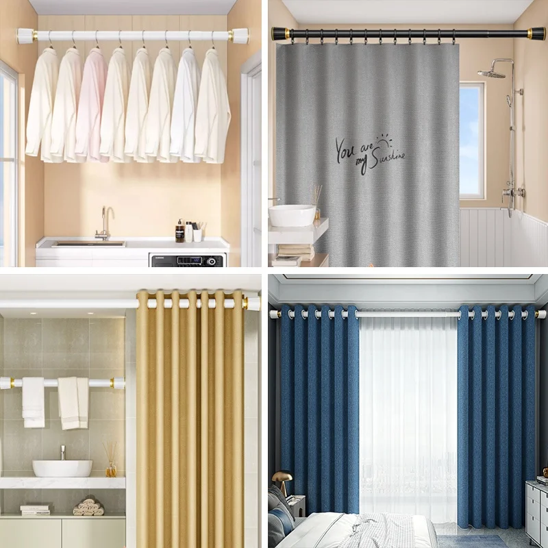 Multifunction Adjustable Curtain rod Tension Curtain Pole Metal Telescopic Black Extendable Curtain Rod