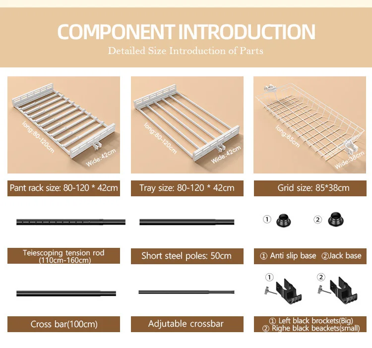 Product nameMetal wardrobeVertical pipe diameter:32mm 38mm and customizable.Color: Black,white,and customizable.Load bearing of single rod:60KGMaterial: Carbon steelAdvantage:Punch-freeThicker and strongerWaterproof and antirustEasy to ...