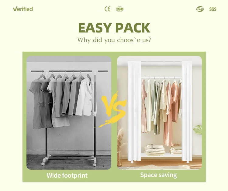 adjustable height, and can be used from 1.1 to 3.1 meters. The wardrobe pole is waterproof and rust proof, and the base is made of