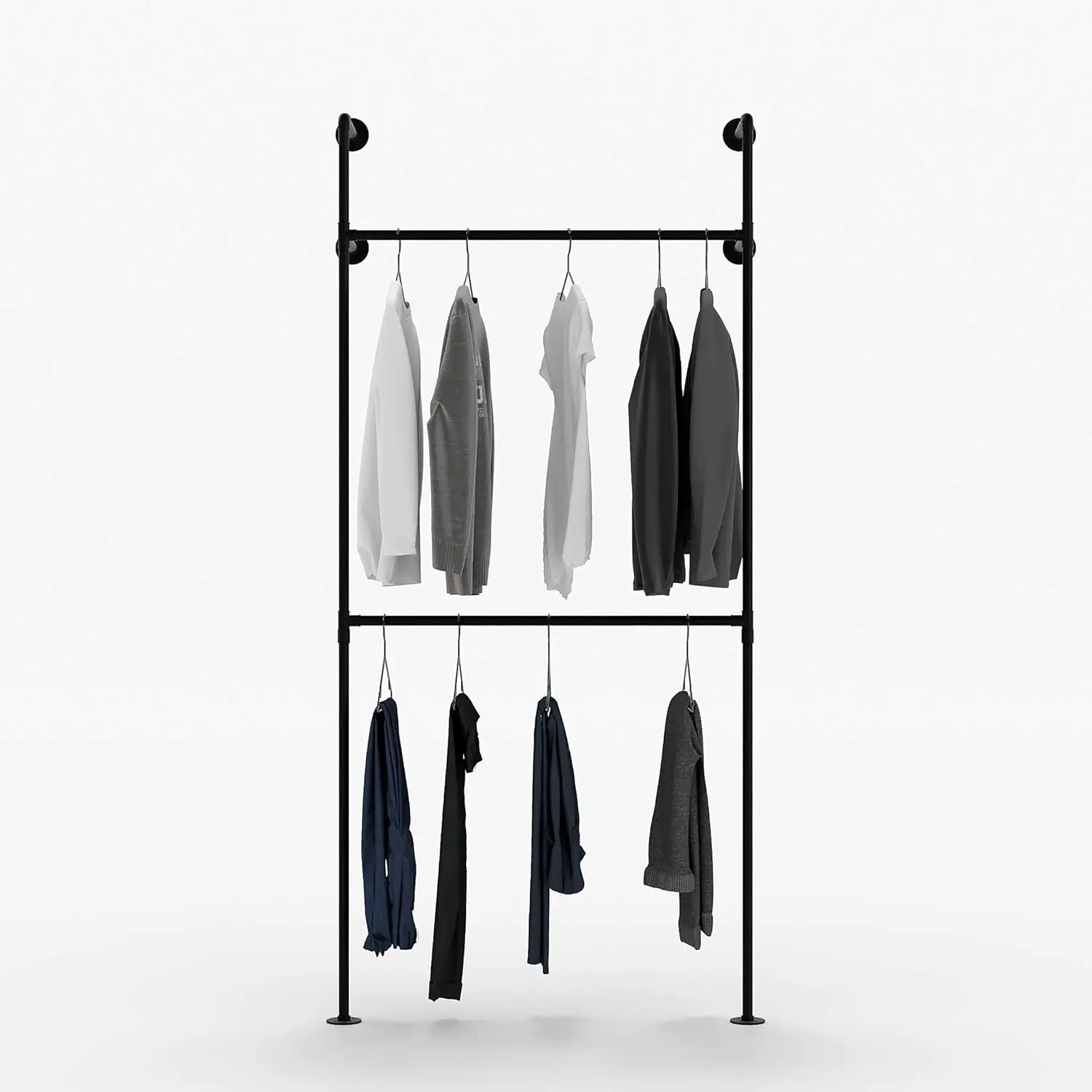 Product name:Industrial Pipe wardrobeHeight: 220cm(86.6inch)Width:105cm(41.34inch)Vertical pipe diameter:25mm(1inch)Color: BlackThickness of pipe wall:1mm(0.04inch)Load bearing of single rod:100-140kgsMaterial: Carbon...
