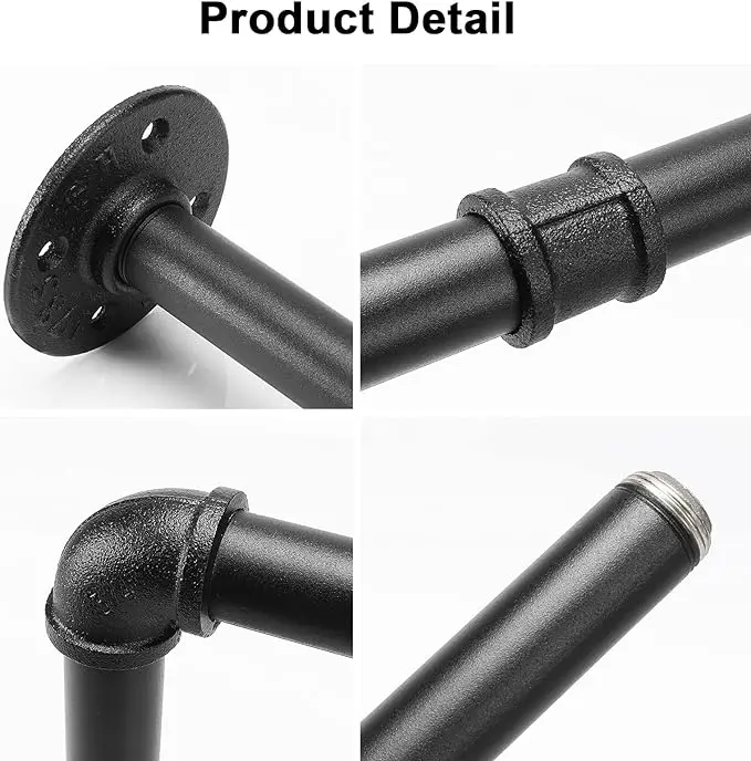 【RESISTENTE E DURÁVEL】 Feito de tubos de ferro pesados, este cabide para roupas é extremamente durável e pode suportar até 45kg quando instalado em uma parede sólida